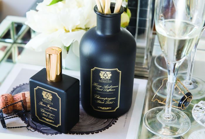 Callaghan chimed in, “We are still small enough that we jump through hoops to develop custom fragrances for some of these properties. We can’t do it for every property, but, for example, we have three different fragrances for the Montage. There are not of amenities brands out there that would do that.” Due to its extensive assortment, Antica Farmacista is able to create unique merchandise selections within stores as well as for its hotels. The assortment encompasses 500 stockkeeping units and 24 fragrances, although most retailers carry far fewer fragrances than are available. The home category, including reed diffusers, candles and room sprays, accounts for 65 percent of the brand’s business, and bath and body captures the remaining 35 percent. Prosecco is the best-selling fragrance, and the brand is elevating the crisp scent for the holiday season with its Champagne Black Label home and body range. “The citrus fragrances are what we sell the most of. They are unisex and they are appealing to the masses, generally speaking,” Callaghan said. “Beyond that, though, we are really seeing a shift toward deeper, chypre fragrances with amber and oak moss. These are fragrances that we have had for years, but we are suddenly seeing a spike in the popularity of them.” The brand is also seeing spikes in sales of candles, and bath and body-care products. Reacting to the strong demand for candles, Antica Farmacista is introducing a 37-oz. oversized three-wick candle housed in brass.