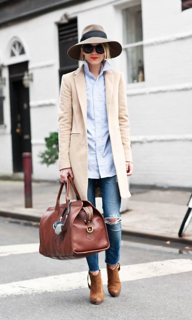 For a casual look, a brown tote bag, crossover bag or a basket bag can be taken and looks amazing especially if your outfit has white in it.