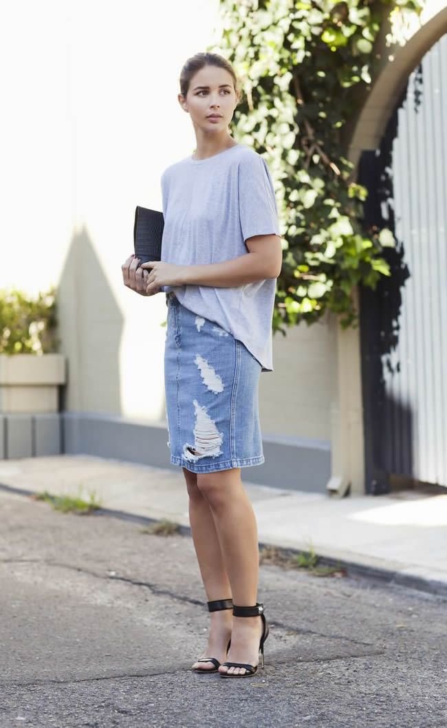 Button front skirt and waist tied shirt is anew thing for this summers. Denim skirts are eventually drifting this season, particularly catch front skirts. That vertical line that catch front skirts offer will give a hallucination of a taller stature, especially if the skirt is a midi one. Wearing a fresh white top with denim skirt is completely ravishing for walking around those cobblestone roads. It emits a ladylike yet easygoing chic feel.