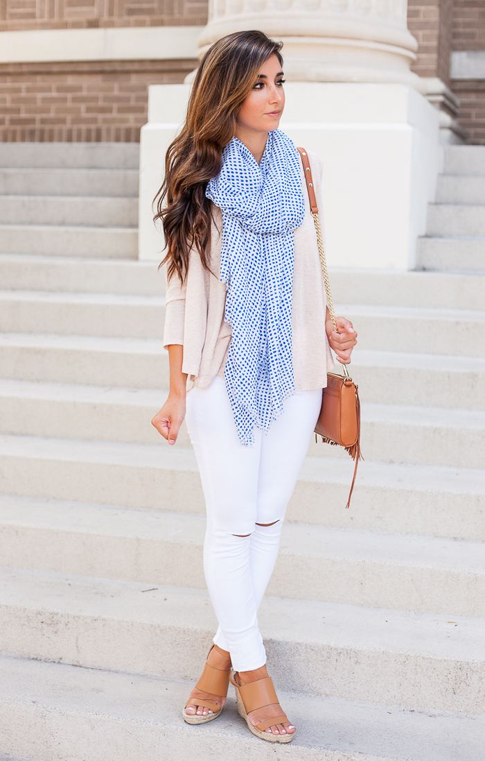 SCARF – fall scarves aren’t that thick and heavy so they would make great accessories for a chilly summer night out with friends. Choose those with pops of color on them so as not to make your outfit look dreary.