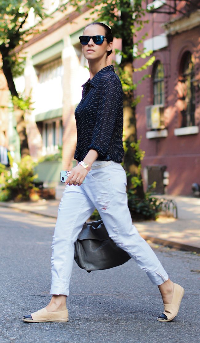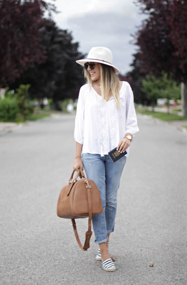 Off shoulder tops are getting truly well known this season and they look stunningly magnificent when combined with espadrilles. For the base a large portion of your outfit, choose a slouchy pair of mother or beau pants to finish the bohemian look. The espadrilles shoes is completely chic and creates an impression, as well.