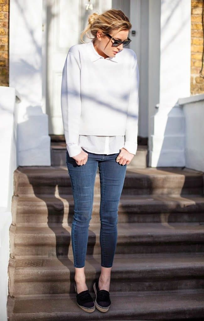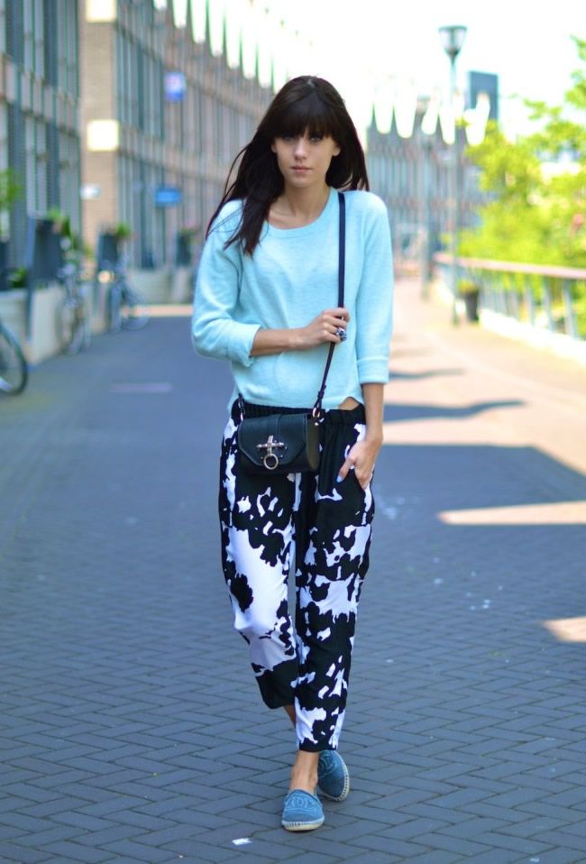 Have your top match with your level espadrilles in a splendid and lovely summer shading, for example, sky blue. This specific outfit is so agreeable to wear particularly with the free jeans. The pants’ high contrast print is additionally a slight bit sufficiently dressy to make this common home garments furnish not so much evident but rather more wearable outside. The espadrille loafers and sweatshirt looks ideal for business and casual outfit.