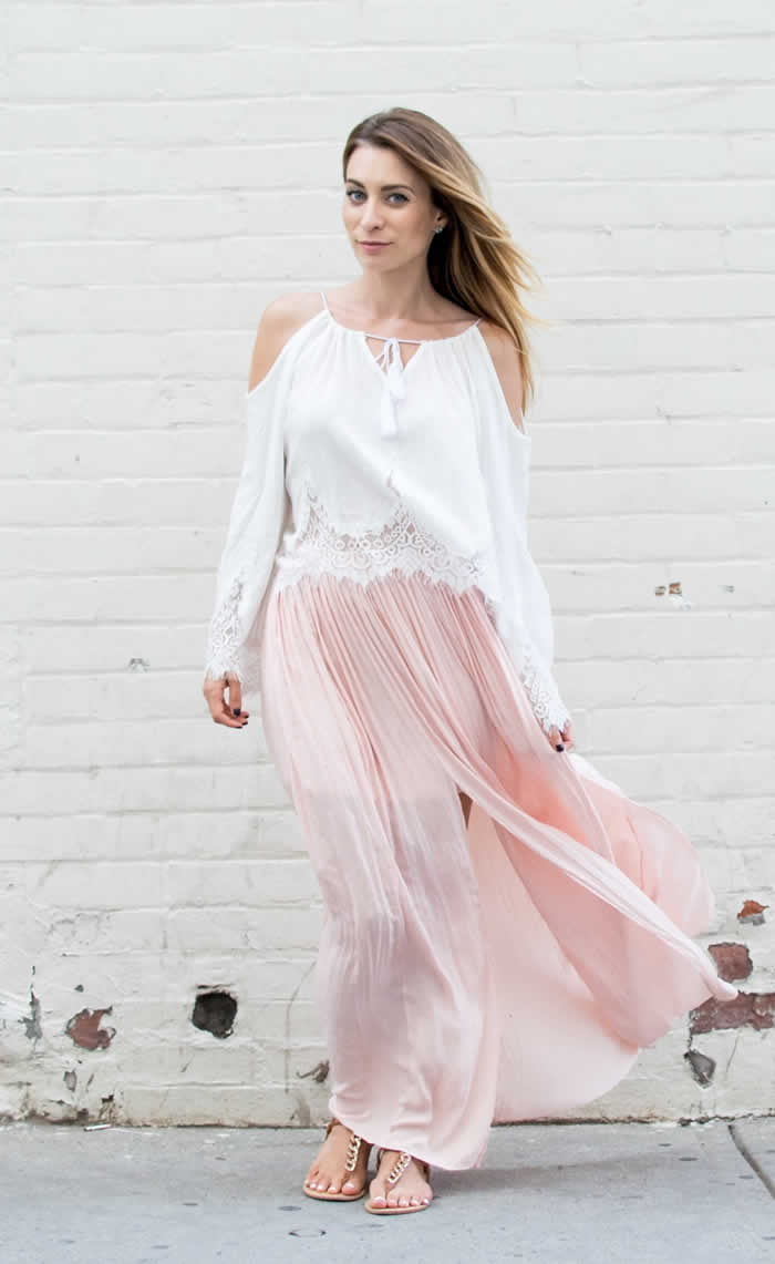 If you wish to add some playful vibe to your summer style, opt for brightly colored dresses with abstract prints in it and complete your looks with complementing accessories. Like fashion blogger Jessica Stein, you may go romantic on your summer style by going for a floral print maxi dress and keep everything simple so that you would maintain your minimalist style like she did.