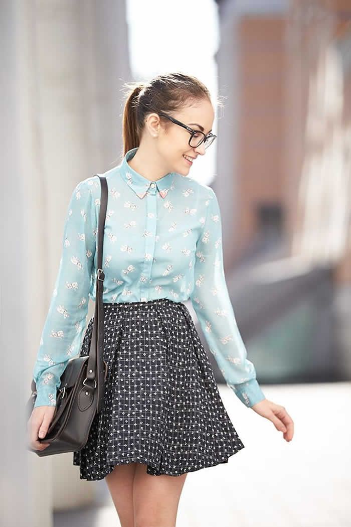 Whether you have astigmatism or not, the easiest way to channel the geeky girl fashion style is to wear a pair of specs. It can be black-rimmed glasses, or a steel circular one ala Harry Potter. Wear this with whatever type of outfit and you’ll surely achieve the ‘smart bookworm’ look right away.