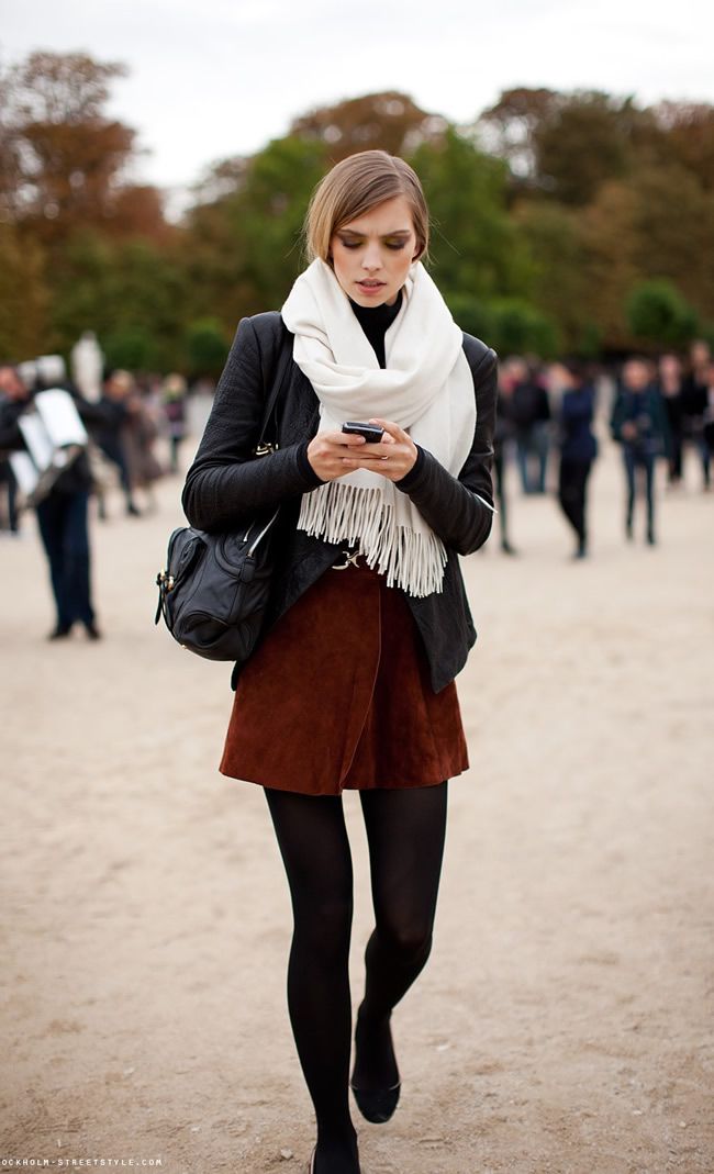 WEAR TIGHTS UNDER SKIRTS AND DRESSES – wearing skirts and dresses out in the blistering cold isn’t exactly wise and practical but there is a workaround to it if you really want to create a dainty and feminine look. To keep your legs from freezing while you’re out in the cold, wear tights under your skirts and dresses. Layering like this will not only provide you with a warm outfit but will also add much style and personality to your look.