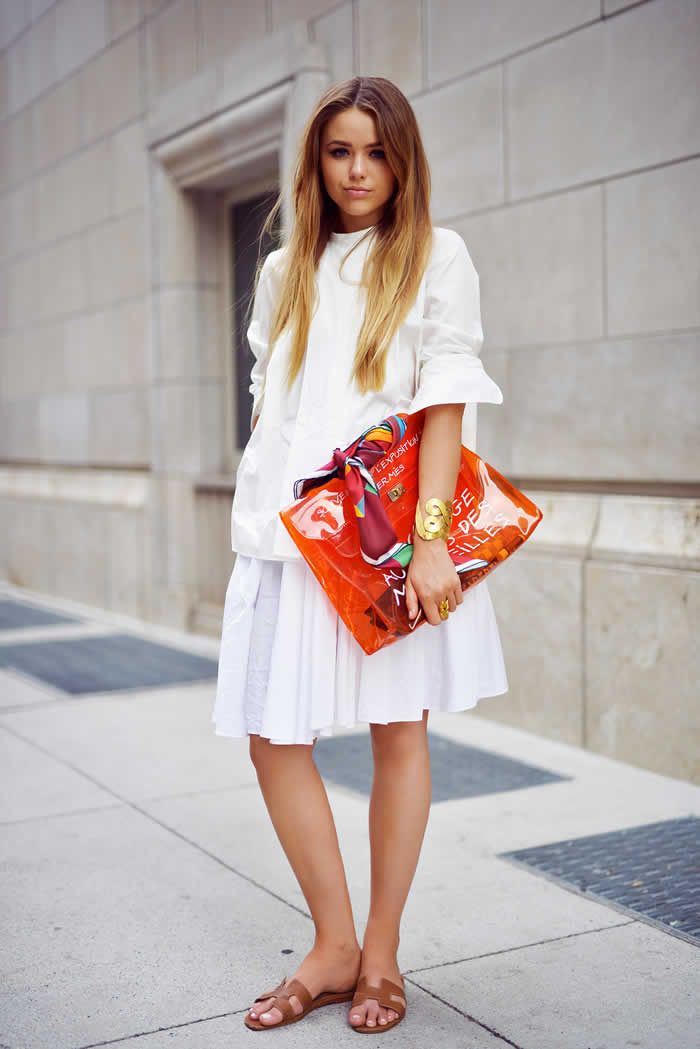 Be intentional on your looks by incorporating brightly colored accessories to bring some life to your white outfit.