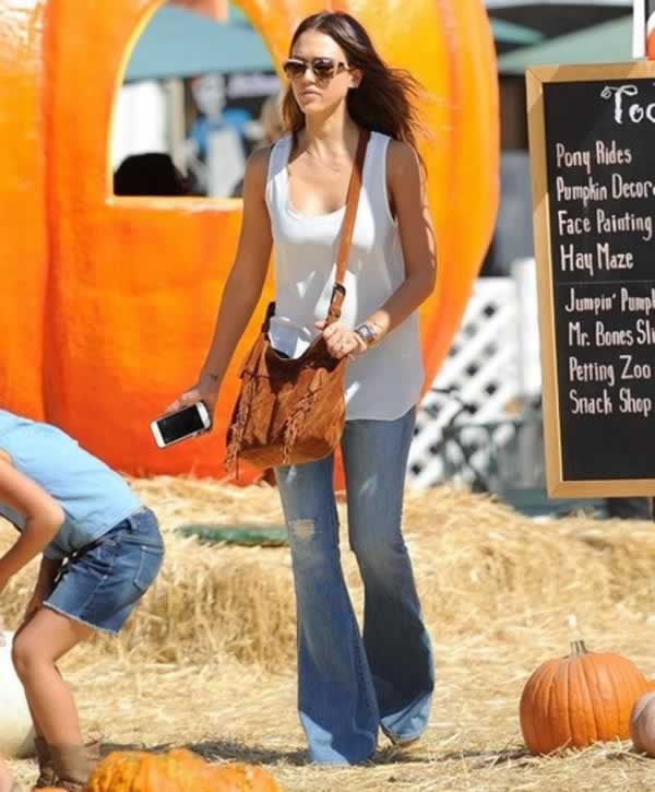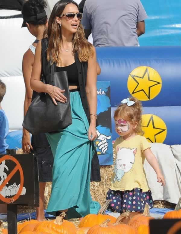 Jessica Alba was spotted wearing Melissa Lovy jewelry twice while at the pumpkin patch with her family over the weekend in Los Angeles.