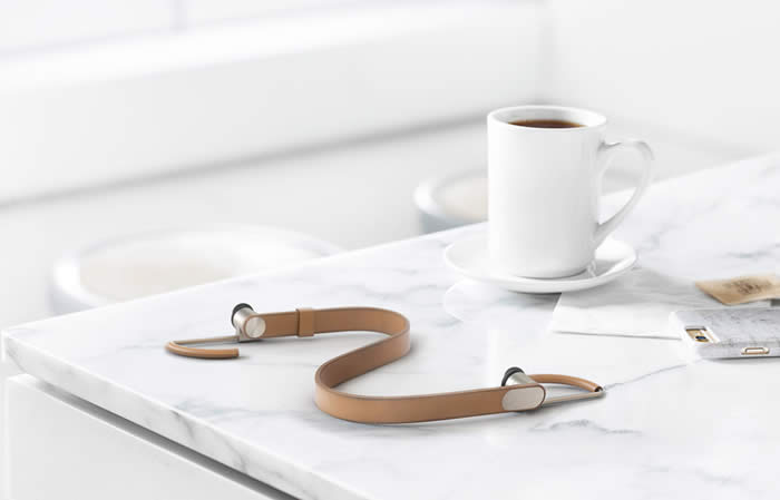 At first glance their leather and metal design alongside the 5-axis articulating earpiece looks remarkably like something that could have come out of the B&O PLAY catalog, a design devoid of any visible wires between the hand-stitched Napa leather band and the champagne anodized aluminum ear lock.