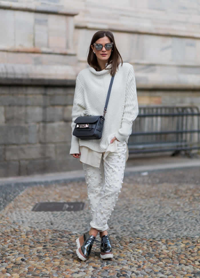 The street style superstar was born in Moscow, raised in Italy, and recently relocated to London, so it makes sense that she’s a bit of a fashion chameleon. The common thread is a trend-driven, edgier feel, though she switches up the pieces and combinations in ways you never expect.