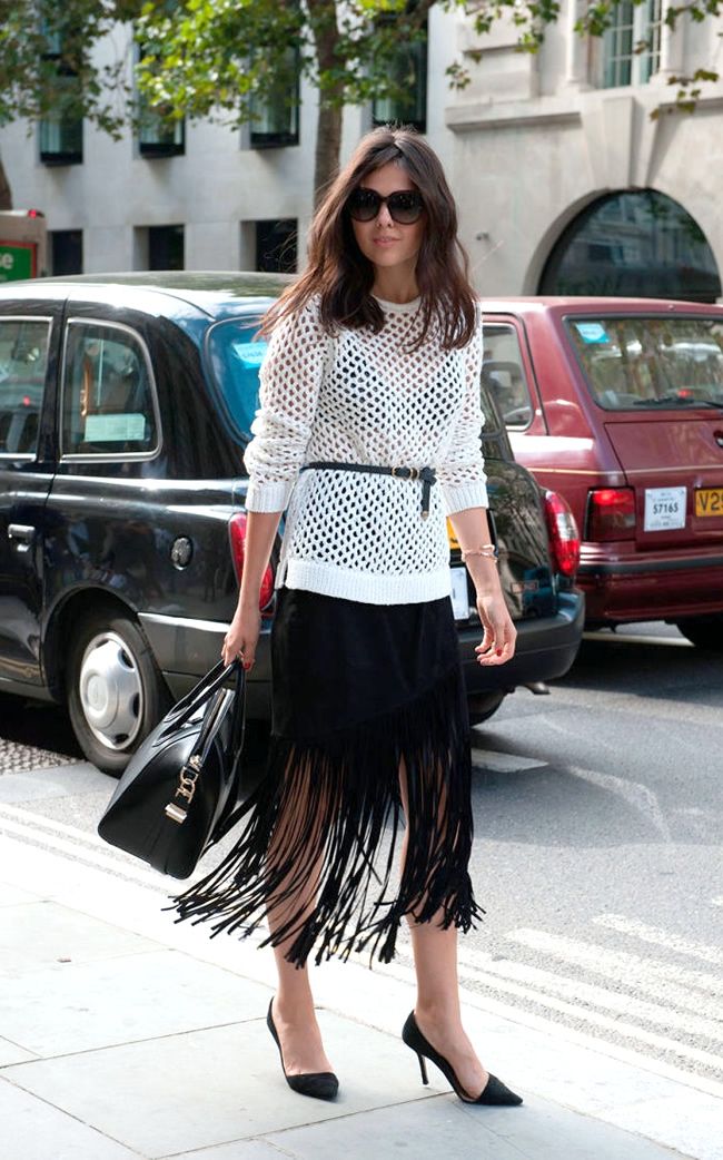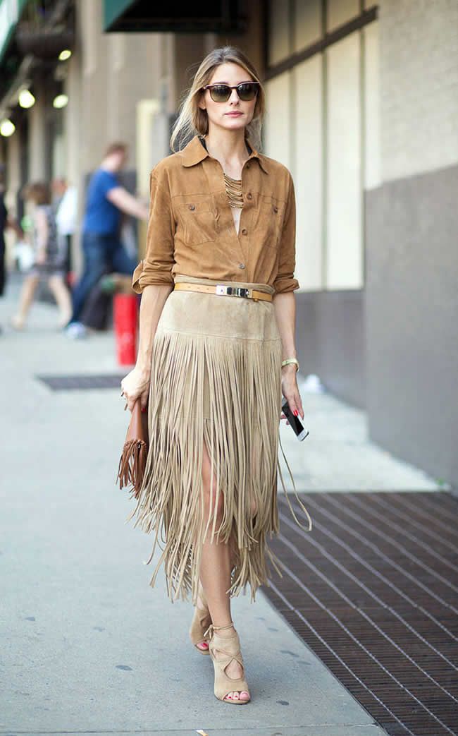 FRINGE SKIRT – a fringe skirt is one of the things you can wear outside of festival season and still pull off. It’s a great addition to any look that needs more movement and little bit of drama and it’s great for adding a nice, unique twist on your outfit as well. You can choose to go with a fringe hemmed skirt but if you think that is too much for you, you can always go with a fringe embellished one instead with less fringes.