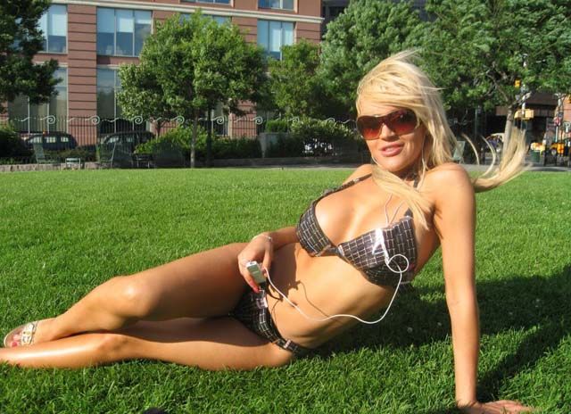 The outer surface of the bikini is covered with 1 x 4-inch (25.4 x 101.6 mm) flexible photovoltaic cells from PowerFilm Solar, which are precision hand-stitched onto the base material using conductive thread. Photon bombardment sends the electrons down to a 5V DC terminator and onward to a female USB connector for device attachment. The output is said to be comparable to a laptop’s USB port, as is the time it takes to charge an MP3 player or mobile phone.