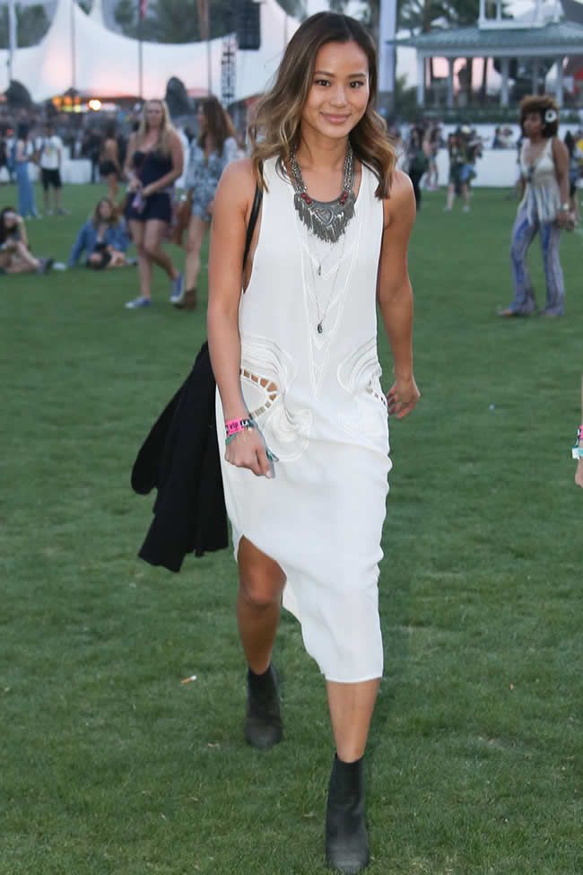 Jamie Chung is pretty flexible with her personal style but the girlishness is always there. For those who are in the mood to be a little edgy and grungey, take an inspiration or two by incorporating certain established edgy and grungey clothes like camo pants and bomber jacket into an outfit that speaks of your own style. May that style be preppy, sleek or, like Jamie, feminine.