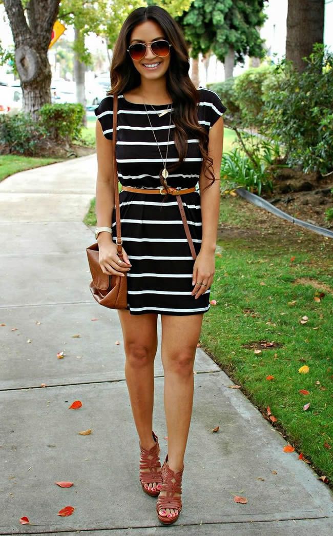 Black and white stripes – another really popular way to wear black and white together is in a striped pattern. Now, black and white stripes can be a little tricky to pull off because you can end up looking either like a mime or an inmate and nobody wants that. Stay away from black and white stripes from head to toe if you want a safe way to pull this look off. Choosing a very updates shape and silhouette for your look and also help you avoid this.