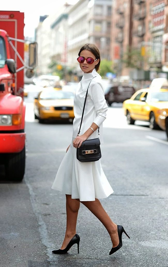 Monochromatic outfit and accent color – monochromatic outfits are super chic and aside from being easy to put together, it makes you look taller and slimmer as well. One really chic way to wear black and white together is to wear a monochromatic outfit in one color and use the other as an accent hue. Most people would opt for black as this maximizes the slimming effect but if you think you can pull off white from head to toe with black accents you can do that as well.