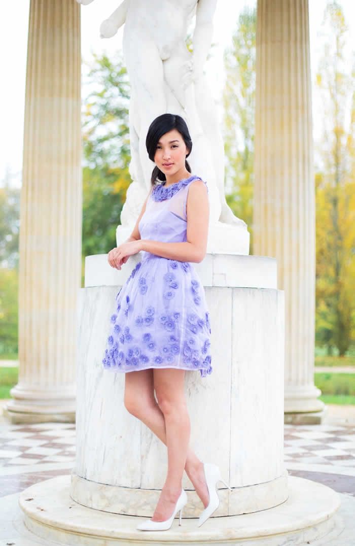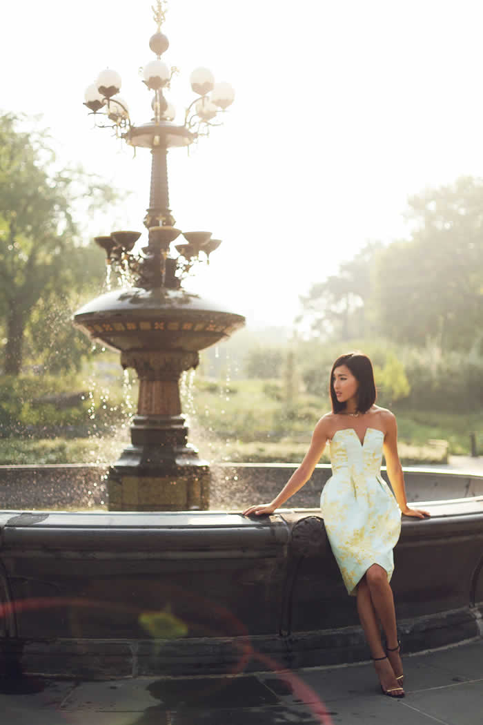 Like fashion blogger Annabelle Fleur, you may even go for a silk cocktail dress in high-low style to show off your lean legs while keeping your back demure.