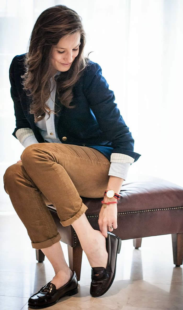 Loafers are an easy way to look flawlessly sophisticated. They are the perfect work shoe for any business’s dress code, and can seamlessly go from day to night with a party dress and edgy western-inspired accessories — like a warm colored bag, detailed belt, or suede jacket (to make them look like a party shoe instead of a work shoe).