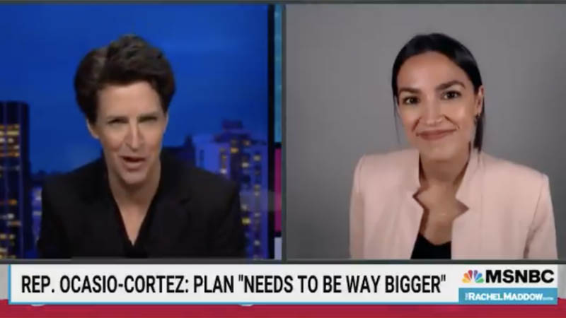 AOC concluded; “And I know that may be an eye-popping figure for some people, but we need to understand that we are in a devastating economic moment. Millions of people in the United States are unemployed. We have a truly crippled health-care system and a planetary crisis on our hands. We’re the wealthiest nation in the history of the world. So we can do $10 trillion.”