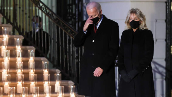Biden ordered flags on federal lands to be lowered for the next five days. Furthermore, the bells at the National Cathedral in Washington, DC, tolled 500 times, once for every 1,000 Americans lost to COVID-19.
