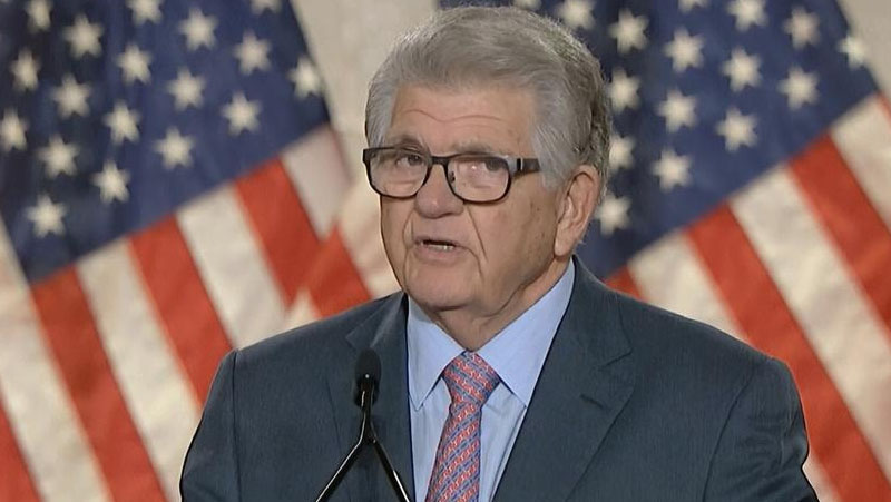 He said that communism has successfully infiltrated American culture and institutions. “Look at our, our academia!” he continued. “Our kids are not being … they’re indoctrinated! They are taught that America is a bad country.