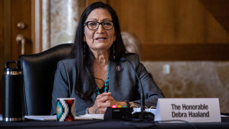 Haaland became one of the first two Native American women elected to Congress in 2018. Her ascension to the cabinet followed weeks of campaigning by Native American tribes and environmental groups in support of her historic appointment. She faced resistance from Republican lawmakers who grilled her at a two-day hearing last month about her involvement in pipeline protests, her support of the Green New Deal climate resolution, and the Biden administration’s pause on new federal drilling leases.