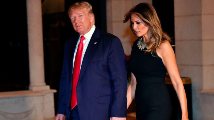 US President Donald Trump and First Lady Melania Trump arrive for a Christmas Eve dinner with his family at Mar-A-Lago in Palm Beach, Florida on December 24, 2019. (Photo by Nicholas Kamm / AFP) (Photo by NICHOLAS KAMM/AFP via Getty Images)