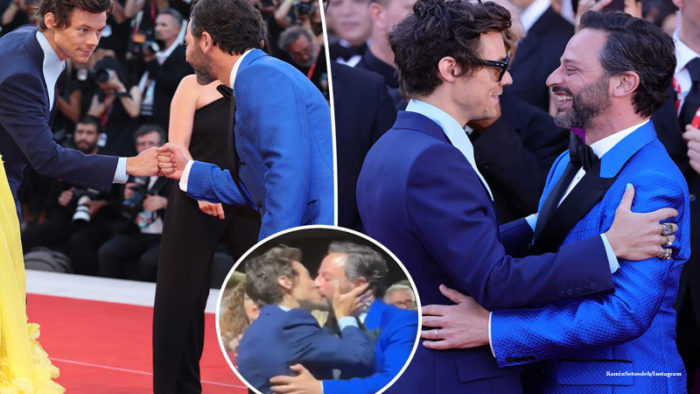 Harry Styles & Nick Kroll share a kiss during the ‘Don’t Worry Darling’ standing ovation at Venice Film Festival. https://t.co/EHlloXBaOJ