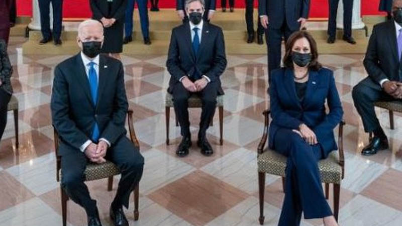 And this new photo of Biden’s cabinet is especially telling as it shows Kamala next to Joe, but she’s seated a solid foot in front of the so-called “president.”