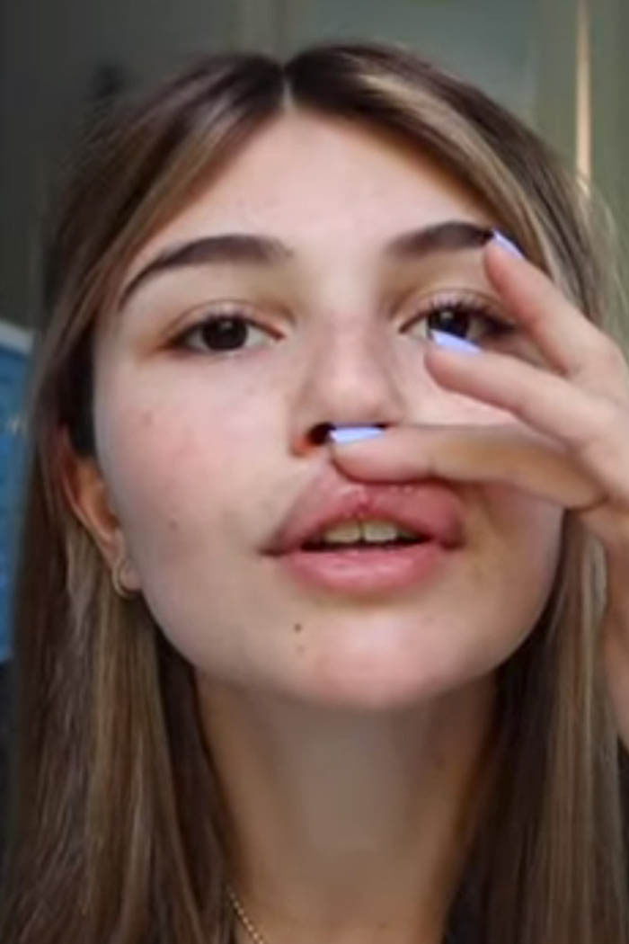 Pointing out her injuries on camera, Olivia said, “I split my lip a little, and then I have like a bump on my head right there. My nose hurts really bad too.”