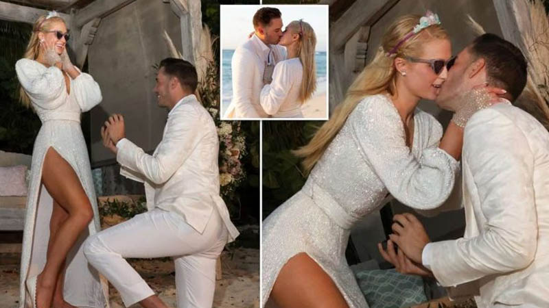 As we walked to dinner along the beach, Carter led us to a cabana adorned with flowers and dropped to one knee. I said yes, yes to forever. There’s no one I’d rather spend forever with.” Hilton also posted a gallery of photos from the proposal on her website, ParisHilton.com.