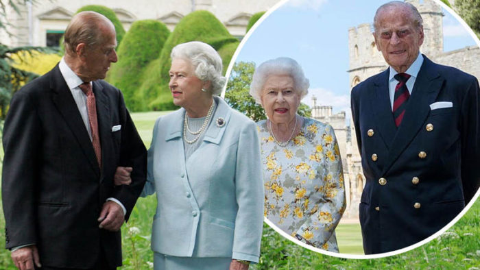 The images show the couple in the White Drawing Room at Windsor Castle, with the Queen wearing a yellow gold broach that Philip gave her decades ago in 1966.