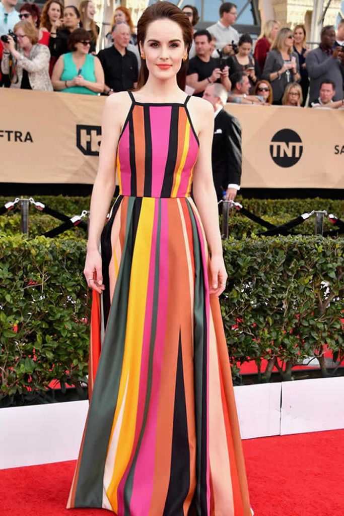 A host of celebrities glammed up for tonight’s Sceen Actors Guild Awards , but it wasn’t only fancy frocks and elegant ensembles that caught our eye. There were some serious fashion faux-pas and crimes against designs by a few famous faces on the red carpet at the annual Hollywood bash. Leading the worst dressed list was Orange Is The New Black star Taryn Manning, whose new pink hairstyle clashed with her plum strapless look. Her co-star Jessica Pimentel also took home the award for most daring design on the night in her major flesh-baring look. Jessica, who is also the singer of a metal band called Alekhine’s Gun, dared to bare in the cut-out dark purple sequin ensemble which featured a risque deep thigh split as well as a deep plunge.