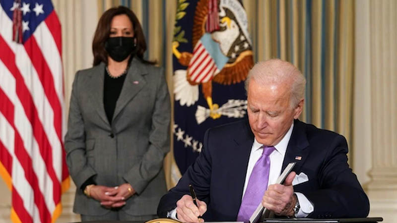 In this Picture American prim minister Joe Biden has shown while signing some papers( Selective focus)