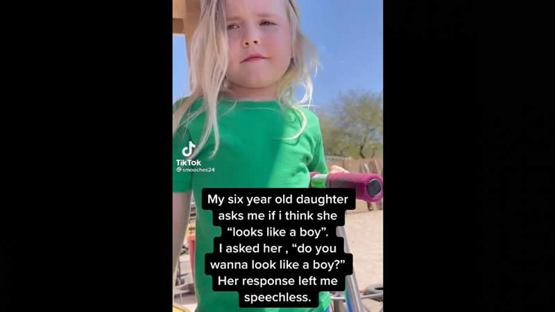 According to the details, a mother who, on TikTok, goes by “Smooches24”, claims she initiated the conversation with her daughter by asking her about her gender. The caption read: “My six-year-old daughter asks me if I think she ‘looks like a boy.’ I asked her, ‘Do you wanna look like a boy?’ Her response left me speechless.”