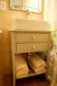 You can create the bathroom you want with a bathroom sink hack just like Jenna from the Suburban Urbanist did. The first step is to find the sink and faucet you want. There are lots of great designs out there, so don’t settle for what you find in local stores if it’s not exactly what you want. The next step is to make a vanity to fit the sink and faucet. This project starts with an inexpensive accent table. A few coats of paint and polyurethane and well-placed holes turn the accent table into a vanity. Then follow the installation instructions that come with the sink, and you’re done.