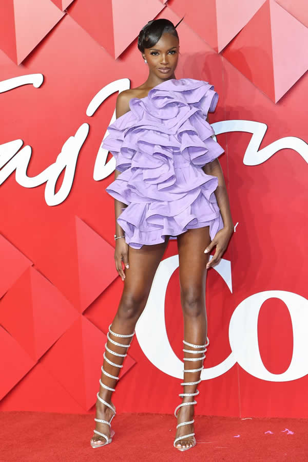 Trains were big news on the red carpet, championed by Adut Akech (Nensi Dojaka), Kristen McMenamy (Valentino), Jourdan Dunn (Stephane Rolland), and Lila Moss (Knowles). Sparkle was another common sighting, worn by Naomi Campbell, Simone Ashley, and Stella Maxwell, among others.