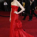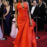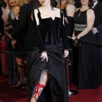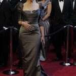 Sandra Bullock found another way to get Kidman’s attention, dropping her clutch at the actress’ feet. “Nicole, now look what you’ve done,” she said in mock exasperation. Last year’s Best Actress winner was a good deal more relaxed as a presenter, saying, “I chose this Vera Wang gown because my son recognizes the color red, so I figured if he saw me on television he’d look at me instead of Gwyneth or Nicole, which is what usually happens.” Helen Mirren chose her Vivienne Westwood gown “because I’m flying the flag to support British fashion. She just opened a store here in Los Angeles so I wanted to show everyone how beautiful her dresses are.” Fellow Brit Helena Bonham Carter wasn’t as selfless when it came to choosing her gown, though it was designed by Brit Colleen Atwood: “I wanted a bustle so I wouldn’t be worried about my bum looking too big.”