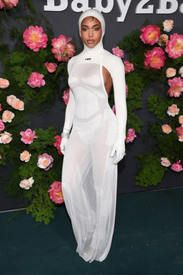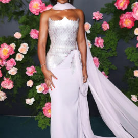 Rowland, meanwhile, looked like a princess in Georges Chakra. Her metallic gown included a scale-like bodice and a whimsical scarf at her neck that transformed into a train behind her. Ciara was also in attendance, sporting a sultry blazer by Dolce & Gabbana. Ayesha Curry was the picture of spring in a whimsical Giambattista Valli dress.