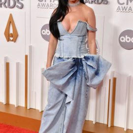 Last year’s CMAs were just as noteworthy. For the 2021 event, Underwood, 39, was a metallic dream in a sequin gown while Katy Perry showed off her curves in a leather Vivienne Westwood creation. Nicole Kidman also attended, dropping jaws in a cutout gown by Saint Laurent. Morris, 32, took the plunge in a low-cut white suit.