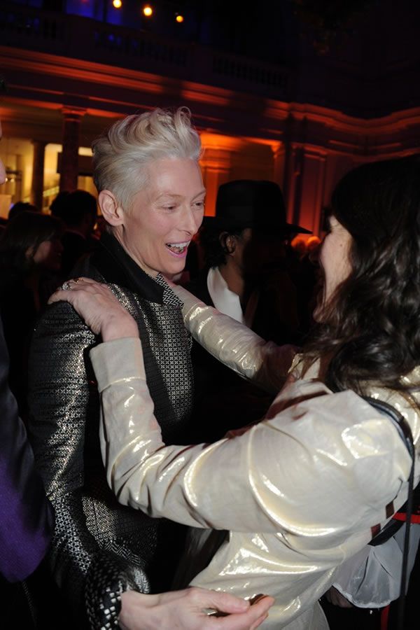 Inside the exhibition, Tilda Swinton was coming to terms with the high-tech audio guide that senses where you are in the exhibition and plays accordingly.