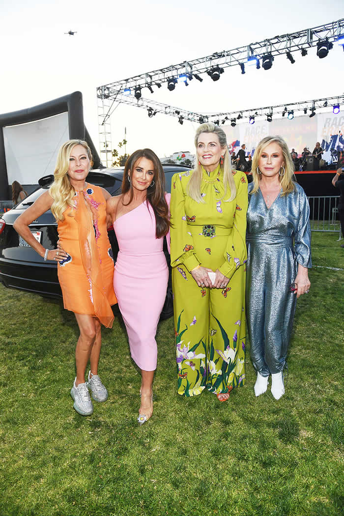 The event kicked off with an Alice + Olivia fashion show, as guests ate dinner inside their cars — or adjacent to them, while socially distanced on beach chairs.