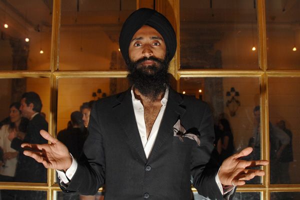 The actor initially hung off to the side before mugging with Kruger at the behest of the photo pit. The low neckline of Jackson’s black T-shirt mirrored that of his date: Kruger wore an appropriately regal ice-blue, sleeveless, floor-length, scoop-necked Azzedine Alaïa dress. She didn’t borrow it, she assured one partygoer, she bought it.