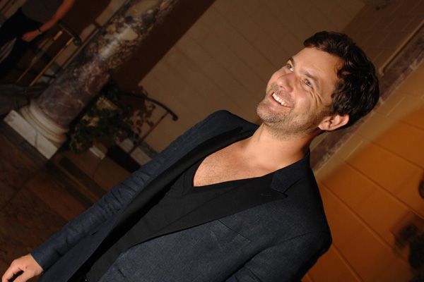 “It’s an odd thing to drink Champagne after watching a revolution break out,” Brady Corbet shrugged upstairs by the bar, where pop music drowned out the strings a floor below. After the lush visuals of Jacquot’s Versailles, the high-ceilinged space felt strangely sparse, with bare walls and no furniture save for a few scattered cocktail tables draped in black and topped with fist-sized arrangements of yellow chrysanthemums. A swirling current of partygoers pursued waiters holding trays of hors d’ouevres like salmon croquettes and fried coconut shrimp. “Maybe we’re supposed to be in mourning,” one guest wondered of the decor.