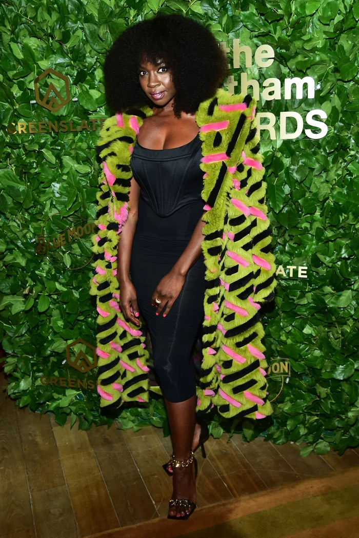 Union, 50 — who was nominated for Outstanding Supporting Performance in The Inspection but lost to Ke Huy Quan for Everything Everywhere All at Once — dazzled Us in a black velvet gown by Fendi. The stunning number featured a graphic print of a Roman soldier and was finalized with a turtleneck construction.
