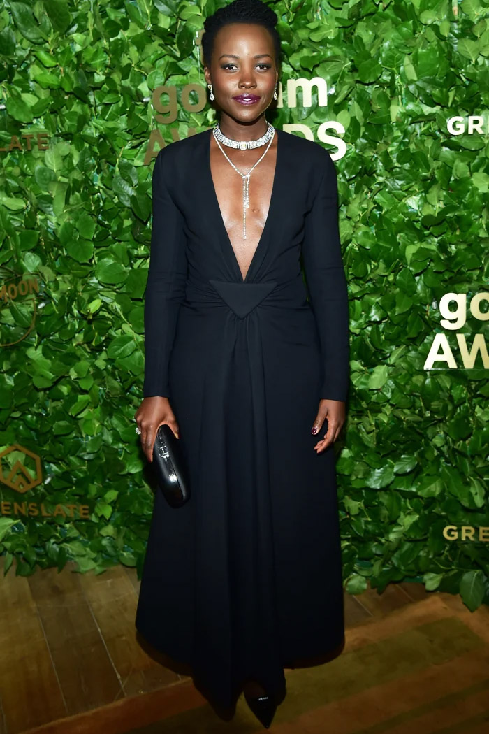 Nyong’o, 39, also went for a daring neckline. The Black Panther: Wakanda Forever actress wowed in a long-sleeved black dress that was made with gathered detailing at the waist.