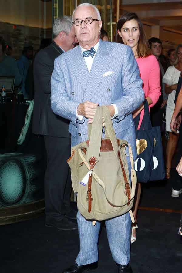 Source: Manolo Blahnik in a sky blue suit at the Mulberry party
