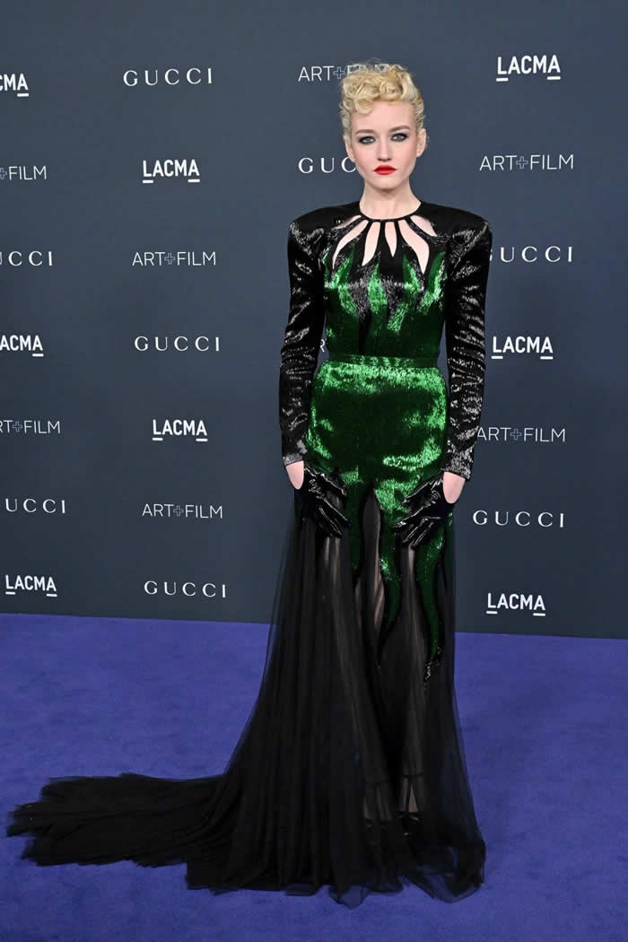 For many of the celebrity guests walking the LACMA red carpet, then, Gucci was the go. Many of the attendees were famous Alessandro Michele clotheshorses; Olivia Wilde for example, who recently wrapped up an incredibly Gucci-field Don’t Worry Darling press tour, slipped into the house’s signature sequins.