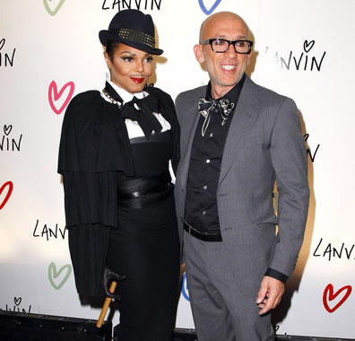 Source: Janet Jackson chose the layered black outfit for males accessorized with a funky gothic hat. Plus the moustache and the red hot gloss gave a bit of freaky she-male look.