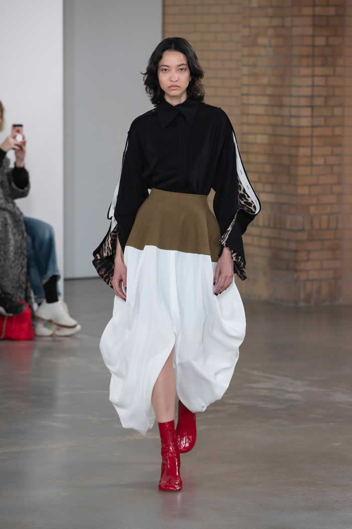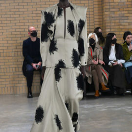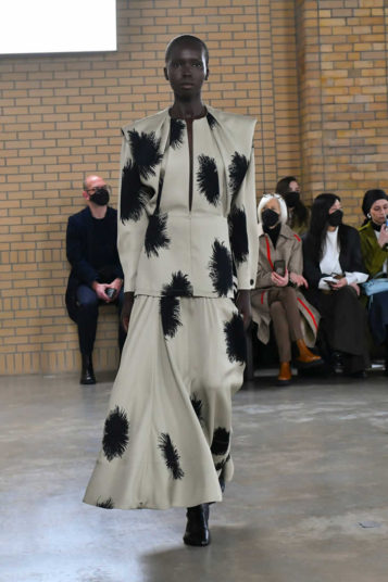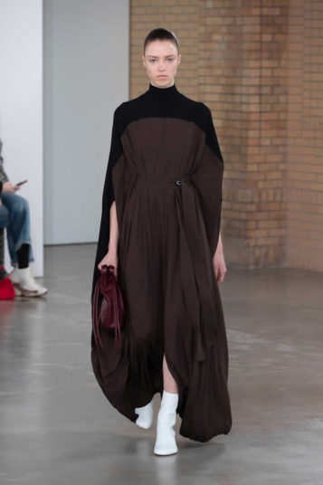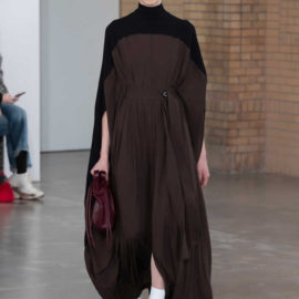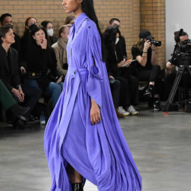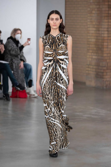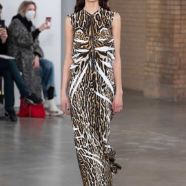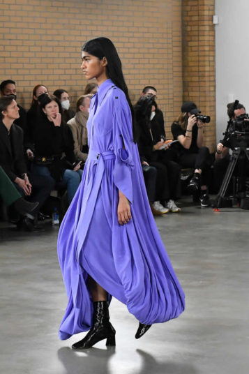 If this outing was a reappraisal of their past, it wasn’t reliant on it. A loose-fitting shirtdress with a fluid looped hem stood out for its color, a vibrant purple that they’ve avoided before. The animal print is another new indulgence. At a pre-fall appointment in December, they said they once deemed it too obvious. Their idea here was to allow the print to glitch as if the color didn’t take in the folds and creases of the fabric as it went through the machine.