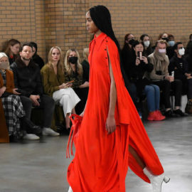 The collection was a repudiation of the homeware and other forms of wardrobe indolence brought about by two-plus years of the pandemic. With Omicron fading, they’re looking forward to a fall season of strong tailoring and soft dresses whose sophistication is matched by a body-conscious sensuality.