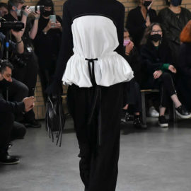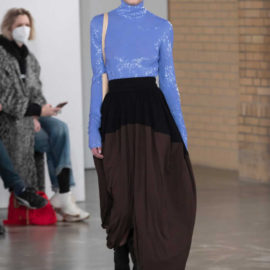 Comfort and ease are fashion’s buzzwords of the moment, relics of a lockdown that remain even as the emergence we’ve been hoping for starts to take shape. The corseted silhouettes that were the first Proenza Schouler signature, however, have been completely rethought for today, constructed from machines that knit in circles, allowing for a seamless, molded look.